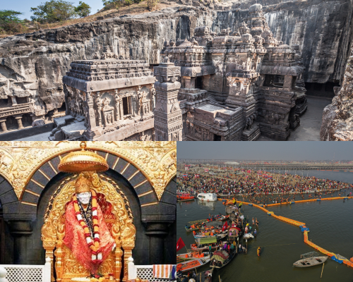 Full Kumbh Mela immersion, multiple ritual bathing days, visits to Shirdi (Sai Baba temple), Ajanta & Ellora caves, wine tours, Trimbakeshwar Temple visit, Anjaneri Hills trek, Goda Aarti, Panchavati temples, Sula Vineyards, Nashik heritage walk, Kalaram Mandir, Harihar Fort, Waterfalls and more.
